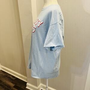 This official Virginity Rocks T-Shirt features the iconic YouTube personality Danny Duncan in a funny and preppy design. The shirt is made of 100% cotton and has a comfortable regular fit with a crew neck and short sleeves. It is available in size large and has a blue color with the Virginity Rocks logo as an accent.