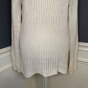 Eileen Fisher Open Knit V Neck Linen Sweater in off white