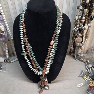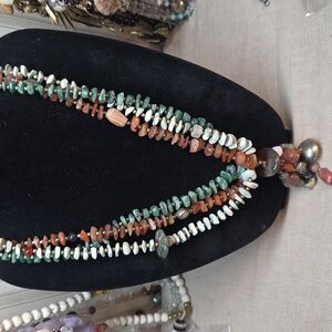 STONE Chunky Statement Necklace. Ocean Jasper, Carnelian Green Adventurine VTG