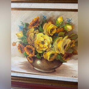 Original Handmade Vintage Oil Painting Fall floral Theme Artist original tag
