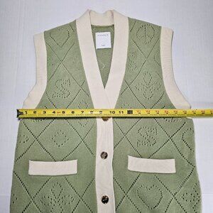 Sandro Paris Espoir Oversized Perforated Wool Cardigan Vest Sage Green Sz 1 / S