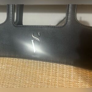 Elegant tote with woven tan body. Black top with sturdy handles, and a magnetic clasp, brand new but misplaced the long shoulder strap- price reflects this. Perfect for daily use- beautiful inside and out!!