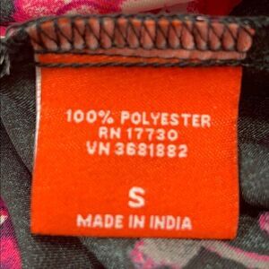 Cute & gorgeous, silky black w/ red & pink floral design, slim tie front scoop neck, slightly puffy sleeves, Elastic at the wrist, Rounded tunic hem,