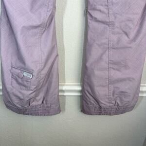 Oakley women's snow pants in size M, regular fit. These purple pants are made from a blend of nylon and polyester and feature Thinsulate insulation, zippered pockets, and an adjustable waistband. They have a solid pattern and a zip closure. Manufactured in China. Pre-owned.