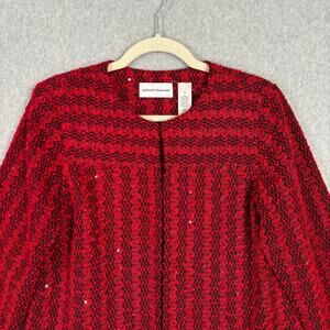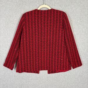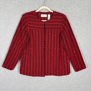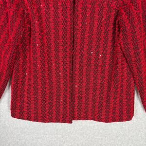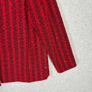 Alfred Dunner Blazer 10 Red Open Textured Sequin Shimmer Pocket Zig Zag Corp Career Work Office Business Church Classic Casual Preppy Party Wedding Cocktail Formal Evening Bridesmaid Holiday Christmas Event Black