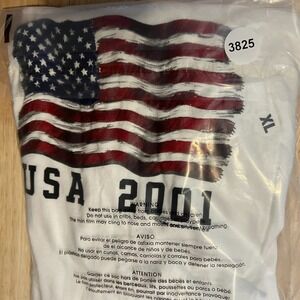 Vintage Y2k American Flag USA 2001 White T-Shirt Sonoma New No Tags READ