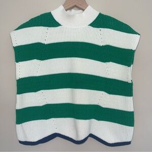 Maeve Anthropologie Cap Sleeve Sweater Vest L Shaker Stitch Striped Green/White