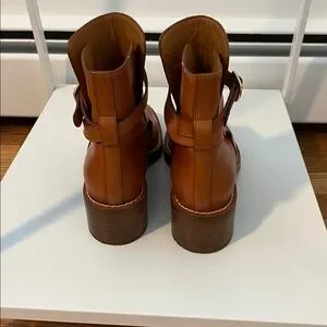 Gently worn. In great slightly broken in condition. Size 37.5. I’m a 7 and they fit nice but with a little room. Marking brown but they are a lighter brown, as pictured, no filters.