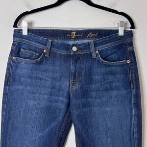 7 for All Mankind Womens Flynt Jeans 29 Bootcut Low Rise Dark Wash Stretch Denim
