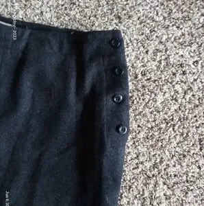 Pants are in good condition on the outside, but part of the inside lining was torn, so I cut all of the lining out, the exterior of the pants is completely fine. No stains , had buttons on the side and is dry clean only. Please review photos and details before purchase, and feel free to message me with any questions you may have.