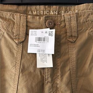 Explore comfort and style with these American Eagle Outfitters cargo pants. NWT. Featuring a versatile tan color, these pants are perfect for casual outings or outdoor adventures. Enjoy the practicality of multiple pockets, drawstring bottoms and a stretch fit.