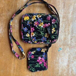 Vera Bradley black floral cross body and coin purse in excellent , like-new condition.