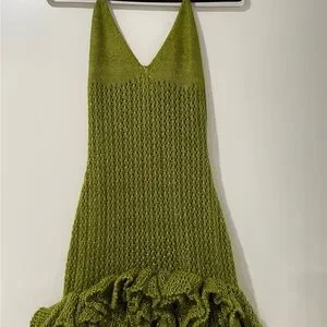 This crochet inspired mini dress provides the right amount of flare and excitement. With crochet ruffles at the bottom of the garment, Iggy's flirty silhouette mirrors a flower in bloom. Worn twice for a few hours, very good condition