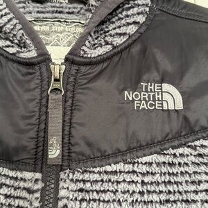 The North Face Striped Gray and Black Jacket w/ hood size M (10-12)