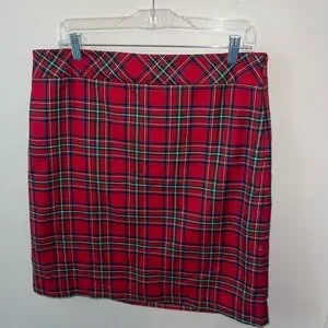 Chic Talbots skirt with a vibrant red tartan design. Perfect for any occasion.