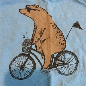 Charming blue tee with a bear riding a bike. Fun and casual style.
