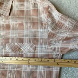 Bundle lot of 2 Joseph Abboud Men's Button Up Long Sleeve shirts in baby blue and dusty pink plaid pattern with flap pockets