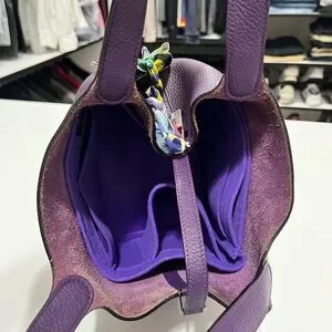 Comes with: lock, authentic Hermes twilly, box for twilly, generic dustbag for handbag, **no key** but bag still opens enough for normal use, zoomoni organizer in purple color