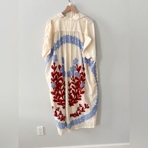Carolina K Valerie Caftan Dress Size L cream blue burgundy organic cotton NWT