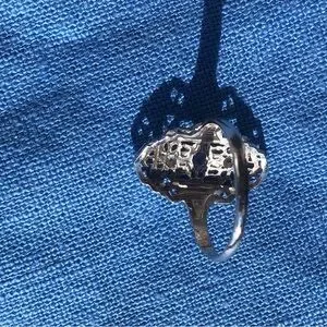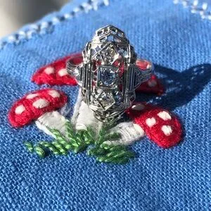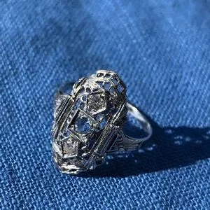 14k art deco filigree ring. I do not know what the gems are.