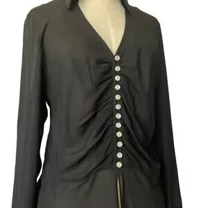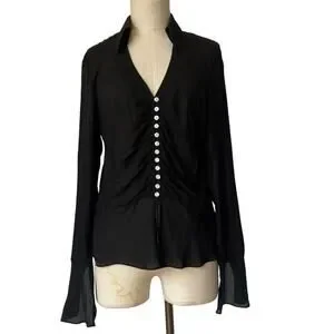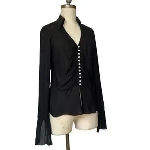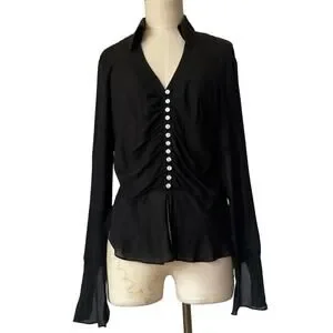 2000's Y2K top size 10 Anne Klein black sheer button up silk whimsigoth witchy