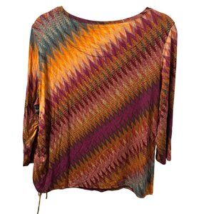 Ruby Rd. Petite Chevron Top 3/4 Sleeve Sz PXL Bright Multicolor Rayon & Spandex