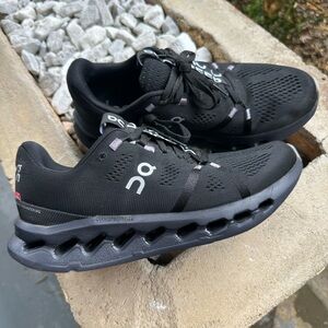 Sleek black design with breathable mesh. Ideal for running and casual wear. Lightweight and comfortable. Used, barely worn