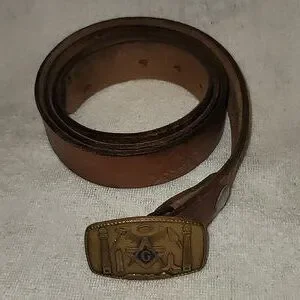 Masonic Harry Klitzner Brass Belt Buckle On Leather Belt