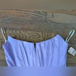 Beautiful lavender satin with boning for structure, back zipper, and full ivory lining. True early 2000s Y2K prom or formalwear collectible.
