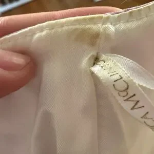 Condition: New with tags — a few light spots from age/storage (see close-ups), likely removable with dry cleaning. Otherwise excellent vintage condition.