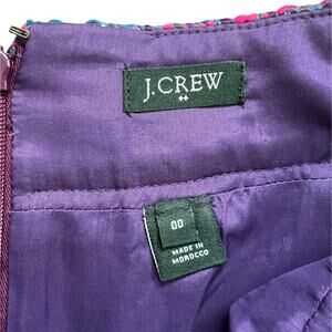 J. Crew Boucle Tweed Purple Pink Blue Gray Lined Wool Blend Zip Mini Skirt sz 00