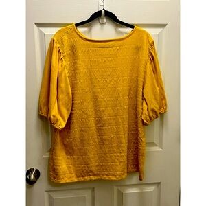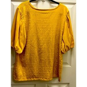Talbots Plus Size 2X Yellow Smocked Puff Sleeve Knit Top