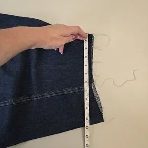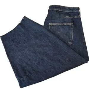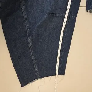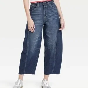 Universal Thread dark wash barrel jeans, size 17/18. High rise, curved leg, barrel style. 5-pocket style, belt loops, raw hem, button fly, relaxed hip and thigh. Tagged as size 17, fits size 18. Please check measurements.