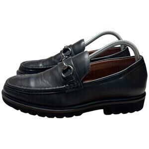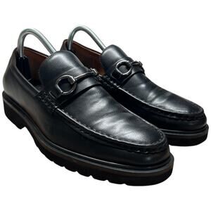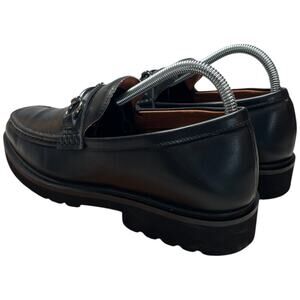 STEVE MADDEN Mister Women's 8 Black Leather Loafer Lug Sole Horse Bit Slip On
