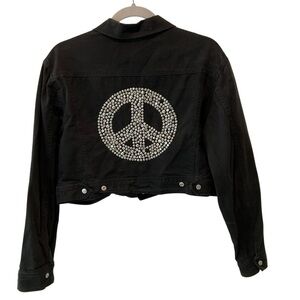 Vtg MICHAEL MORRISON Studded Denim Jacket Crystals PEACE SIGN Y2K Gaga Size M