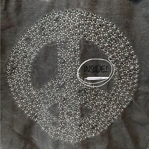Very gently preowned - I noticed 2 missing studs on the peace sign which can easily be replaced with any flat-back stud!
