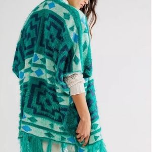 Free People Diamondback Cozy Kimono OS Blue and Green