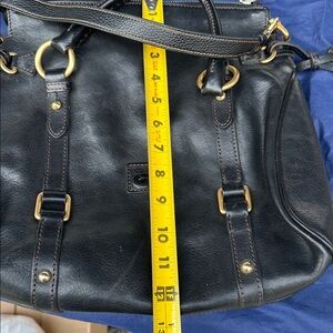 Stylish and durable black leather men's bag with gold accents. Perfect for everyday use.