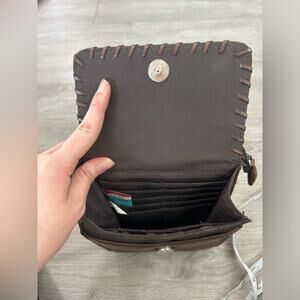 Coletta- vintage genuine leather- some staining brown crossbody- western