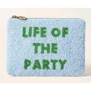 Make a statement with this limited edition clutch from the Kate Spade x Target collection. Featuring vibrant blue and green beading and bold “Life of the Party” text, this compact bag is perfect for special occasions or adding fun to any outfit.
