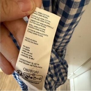 Elegant gingham fabric, fully lined with pockets. Features signature Anthropologie style.