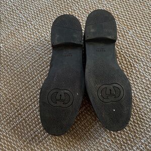Gucci Black Leather Loafers with Gold Accent