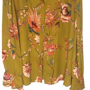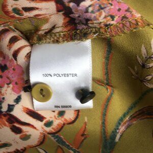 Color/Pattern: Olive green base with multicolor floral print (pink, orange, cream, and green)
