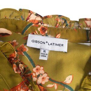 Gibson + Latimer Blouse Womens XL Green Floral Ruffle Cuff Mock Neck Boho Top