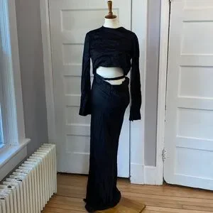 NWT Zara Black Satin Effect Cutout Waist Strap Maxi Dress, Size M