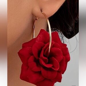 🟣🌺🟣 Purple Rose Silk Floral Hoop Earrings Exquisite Exaggerated Large❗️🟣🌺🟣