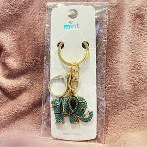 Sparkling Rhinestone Elephant Keychain Bag Charm with Brown and Gold Accents