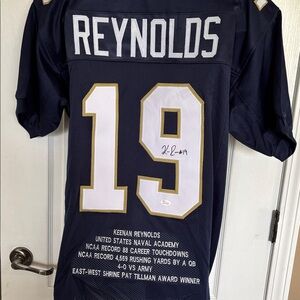 Vintage Keenan Reynolds Autographed Naval Academy Jersey. All numbers and letters are stitched and jersey is in flawless condition. Has career stats and awards & has JSA COA WP215200. The size is a men’s XL.