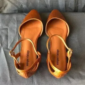 Orange glitter ankle strap, unique, vintage pinup style retro flats from unique vintage in Los Angeles only worn once like new!