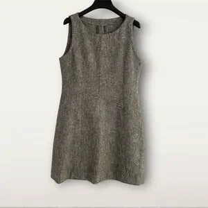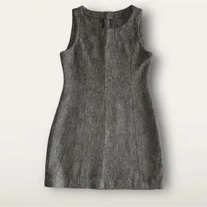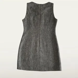 🛍️SALE🛍️ Custom-Tailored Black and Gray Wool Tweed Shift Sleeveless Dress
